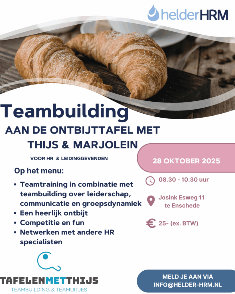 Op 16 september organiseren Thijs en ik een inspirerende ontbijtsessie voor HR-managers en -adviseurs bij Tafelen met Thijs in Enschede.